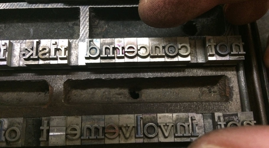 Medium: paintings with charcoal, copper box and lid, engraving title, metal hand set type fabric